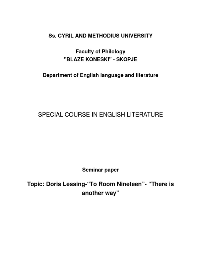 This detailed literature summary also contains bibliography on to room nineteen by doris lessing.